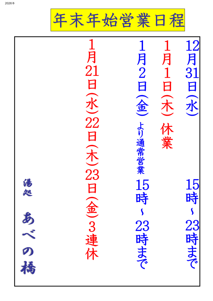 料金、定休日改定のお知らせ(令和7年4月1日~)